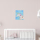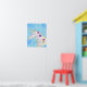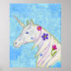 Söt vit majs med blommor i sin mane på blå bakgrund, på den här konsten poster.