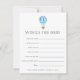 Låt babygästerna önskemål för baby med dessa söta kort som innehåller en lista över meddelanden och plats för gästerna att skriva på namn. Ställe en stapel vid ingången till evenemanget, skicka runt dem eller lämna en vid varje ställe-inställning. Gör att roligten också är viktig för mamman när den kompileras i en söt box eller binder. Utformningen har en luftballong med blå och akvatiska vattenfärger överst med modern text och en subtil, prickad romb mönster på baksidan.