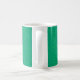 Mugg har en konsdeco-design av blåböjt linjer i en triangelform på fält i grönten som upprepas över designen. Vill du ha en annan färg? Säg det.