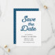 Blå Vågor Spara Datum kort har ett mönster med blå vågor på baksidan.