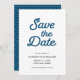 Blå vågor Spara datum-kort har ett mönster med blå vågor på baksidan.