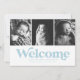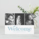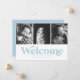 Blå välkomsttre foto födselannons meddelande