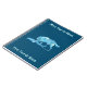 En stiliserad blå varg (Canis lupus) kastar en skugga när den passerar genom snöterräng. Det finns två ställarna för er att lägga till er egen text.