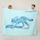 En stiliserad blå varg (Canis lupus) kastar en skugga när den passerar genom snöterräng. Lägg till din egen text.