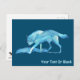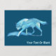En stiliserad blå varg (Canis lupus) kastar en skugga när den passerar genom snöterräng. Lägg till din egen text.
