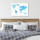 Blå världskarta över vattenfärg canvastryck