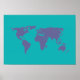 blå världsomspännande karta poster