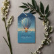 Blå varmluftsballongäventyr väntar Baby Shower Presentetikett