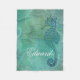 Blå Vatten, sjöhäst och blommor Fleecefilt