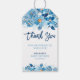 Blå vattenfärg, babyskor, Tack Presentetikett