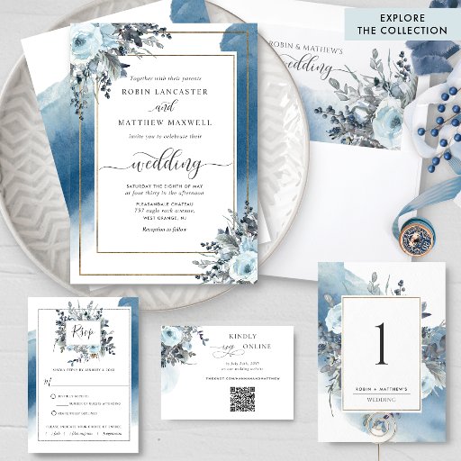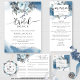 Blå vattenfärg med Elegant Blue Blommigt Bröllop Inbjudningar