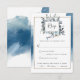 Att fånga OSA kort med möjlighet att lägga till eller ta bort ingångsalternativ. Blåfärgstreck som bakgrundsdropp, elegant metallisk ram och exquisite blommigt-detalj på överkanten med bladfärg i blått, sage, grått och karamelltoner. Bakåt med blå vattenfärgsflödande färg. En del av vår "Rustic Blue Mountains bröllop och evenemangsinsamling".