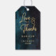 Blå vattenfärg och Guld Bröllop Kärlek och tack Presentetikett