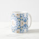 Anpassningsbar mugg i monogram kaffe med en vacker blå vattenfärg och metallisk abstrakt i guld mönster.