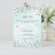 Bröllop OSA-kort i ljusturkos blåfärgsblått mönster med glamorös silver-konfetti. Observera att silver endast har fotoeffekt.