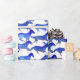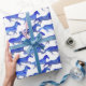 Hästarna som omsluter papper trycks med blå vattenfärg mönster. Alla hästar springer som vild mustangar på vit bakgrund. Du kan göra mönster på presenten större eller mindre. Den här pappra inslagningen av riddjuret mönster är ett vackert presentemballage för alla kärlek hästar.