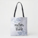 Budens mamma Bröllop Tote Bag-mallar - Vintage Blue Watercolor Lövs och handskript på Watercolor Stänk Background. En Perfekt för din stora dag. Alla textstorlekar i stil, färg, kan ändras för att passa dina behov!