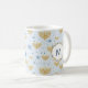 Blå vattenfärgen Monogram + Hanukkah Mönster Kaffemugg