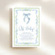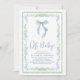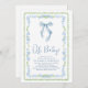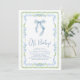 Charming och söt duschinbjudan i pojke med vintage-inspirerad grönt och blått ramar, blå coquette-buskfärg, "Oh Baby", utvisad i ett blått chic och namn i mor och duschdetaljer i klassisk serif-typografi.