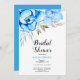 Blå vattenfärgsblommor bröllop möhippa inbjudningar
