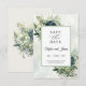 Spara datumkort, bröllopsinbjudan, blommigt blå och grönt bouquet vattenfärgston pastel färg-klass