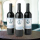 Blå vattenfärgsfästpunkt Nautisk Bröllop Vinflaska Etikett