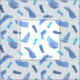 De blå prickarna ritas i vattenfärger och med oljepasteller och placeras på en ljusblå bakgrund.