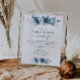 En underbar design med målade blå vattenfärgblommor Texten och färg på det här bröllop-tecknet poster du.