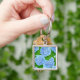 Blå vattenkraft mönster fyrkantig silverfärgad nyckelring