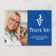 Anpassade blå veterinärskola examen tack vykort med veterinär medicinsk kaducé bredvid din examen foto. Anpassa dessa vykort tack med chic vit skrift bredvid ditt fotografi för din djurklinik.