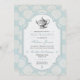 Fira en speciell person eller ett par med en traditionell brittisk eftermiddagste. Bakgrunden på inbjudan är en vintage blå pappersbild mönstrad med vita rosetter. Ramen med en vintage vit pappersmitt har en vintage-illustration av en utsmyckad tekanna. Mångsidig nog att använda för en bröllops- eller coupleshower, baby shower, födelsedagsfest, bröllopsbrunch eller en speciell lunch. Finns i alternativa färger med matchande produkter.