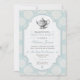 Fira en speciell person eller ett par med en traditionell brittisk fika. Bakgrunden på inbjudan är en vintage blå pappersbild mönstrad med vita rosetter. Ramen med en vintage vit pappersmitt har en vintage-illustration av en utsirad tekanna. Mångsidig nog att använda för en bröllops- eller sällskapsfest, baby shower, födelsedagsfest, bröllopsbrunch eller en speciell lunch. Finns i alternativa färger med matchande produkter.