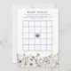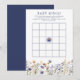 Ge liv åt din baby shower med vårt Blue Wildflower Boho Baby Shower Bingo-spelkort. Detta interaktiva spelkort har en charmig blomsterkant med blå och vita vilda blommor som perfekt kompletterar din boho-inspirerade fest. Kortet ger en rolig och engagerande aktivitet för gästerna och uppmuntrar dem att fylla i de tomma rutorna med gåvor som de tror att den blivande mamman kan få. Den som först fyller en rad vinner, vilket ger en trevlig och tävlingsinriktad twist till din fest. Dessa bingokort är inte bara ett bra sätt att underhålla gästerna utan passar också vackert in i din baby showers estetiska uttryck.