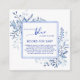 Fyll i din baby shower-inbjudan med vårt **Blå vildblomma ”Something Blue” Böcker för Baby-bifogad kort** - det söta sättet att lägga till charm och praktiskhet på din speciella dag! Designad med ömtåliga blå vildblommor och mjuka romantiska detaljer, kompletterar detta bifogade kort elegant, rustik eller trädgårdsinspirerad baby shower-papper.