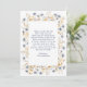 "Blue Wildflower Frame Baby Shower Tacksamhetskort" presenterar en graciös ram av blå och gyllene vildblommor som omger ett hjärtligt tackmeddelande. Den känsliga blomsterdesignen skapar en lugn och charmerande atmosfär, vilket gör den perfekt för att uttrycka tacksamhet till gästerna efter en baby shower. Mot en ren vit bakgrund drar de livfulla blommorna uppmärksamheten till det personliga meddelandet inuti, och förmedlar elegant uppskattning från både barnet och föräldrarna. Detta kort är ett idealiskt sätt att tacka nära och kära för deras stöd och gåvor under en så speciell tid.