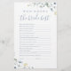 Underhåll dina gäster med detta roliga bröllopsduschspel "vem känner bruden bäst", med elegant delikat akvarell vildblomma och stilfull modernt skrivsätt, pastellfärgspalett i mjukt gult, offwhite, salvia grönt, dammigt blått och botanisk grönska, enkelt och romantiskt. Perfekt för rustic country-fest, modern boho bröllopsdusch, botaniska trädgårdens bröllopsfirande under våren och sommaren.