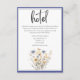 Detta formella och eleganta blå vildblommor-hotellkort för bröllop innehåller blå, gula och beige vildblommor, modern typografi och en mjuk blå färg, helt anpassningsbart med dina bröllopsdetaljer och en QR-kod för din bröllopswebbplats. Den formella designen och formuleringen ger en touch av elegans till din bröllopsfirande.