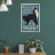 En vintage stil poster - visar en svart katt fylld med stjärnor. Med stöd av en glödande måne. Den vita texten på den teaterblå bakgrunden lyder: "Sluta aldrig tittar för magin!"
