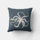 Lägg till vintage nautiska stil i ditt land, din båt eller bassäng med vår utomhusblå dekorativ kudde i rik marin blått, med en benvit vintage iktad illustration av stil bläckfisk.