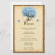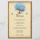 Blå Vintage Fågel Hjärtblad Träd Bröllopsmeny