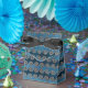 Nött grunge-mönster med havsvågor i presentlåda i nyanser av blå och brons.