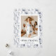 Vattentärsfärgat blått foto-God jul-kort med vinter-blad. Anpassa enkelt det här helgdag med ditt foto och din familj namn.