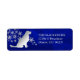 Denna distinkta returadressetikett har en silverfärgad siluett av en retriever framför en spridning av utsmyckade silver snöflingor. Bilden är placerad på en gradient djupblå bakgrund. Din anpassade text är i matchande silver till höger om bilden. Vacker!