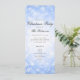 Elegant julfestlig inbjudan med program och meny med jul vintriga underlandet snöflingor i blått.