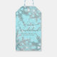 Blå vintervonderland Eleganta snöflingor bröllop Presentetikett