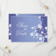 Ett verkligt vackert spara-datum-kort. En vit blomma sträcker sig upp till höjden av denna inbjudan mot en blå-violett bakgrund. Blommor sträcker sig ut för att rama in din anpassade information. Finns i alternativa färger med matchande produkter.
