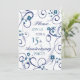 15-årsjubileumsfest inbjudningskort i elegant vit och blå blomsterdesign, delikat och stilfull med lekfulla virvlar. Anpassningsbar med dina festdetaljer.