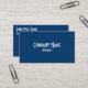 Mörk blått affärskort av standardtyp med vitt teckensnitt.