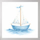 Blå & Vit Akvarell Segelbåt – Marin För Barn Poster