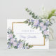 Snyggt sätt att uttrycka sin tacksamhet till familj och vänner. En lush botanisk spirg av vit ros och blåa blommor skapar vackra accenter för blommigt på två hörn av guld ram. Med tre linjer text kan du anpassa framsidan. Inuti kan du ställe ditt foto överst och ett tack för dina känslor. All text är lätt att redigera.